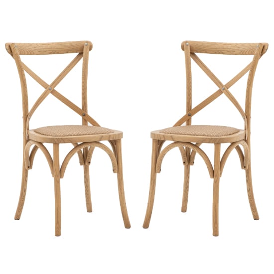 Caria Natural Wooden Dining Chairs With Rattan Seat In Pair
